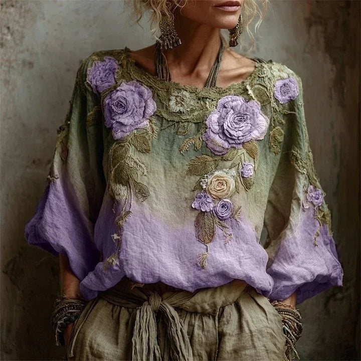 Vendor:Bazaare Mart3D Boho Floral Round Neck Long Sleeve Top