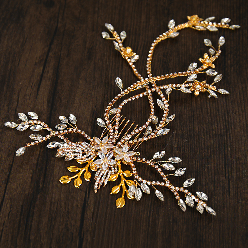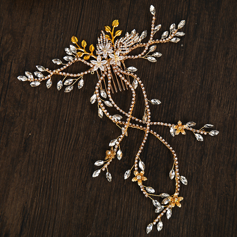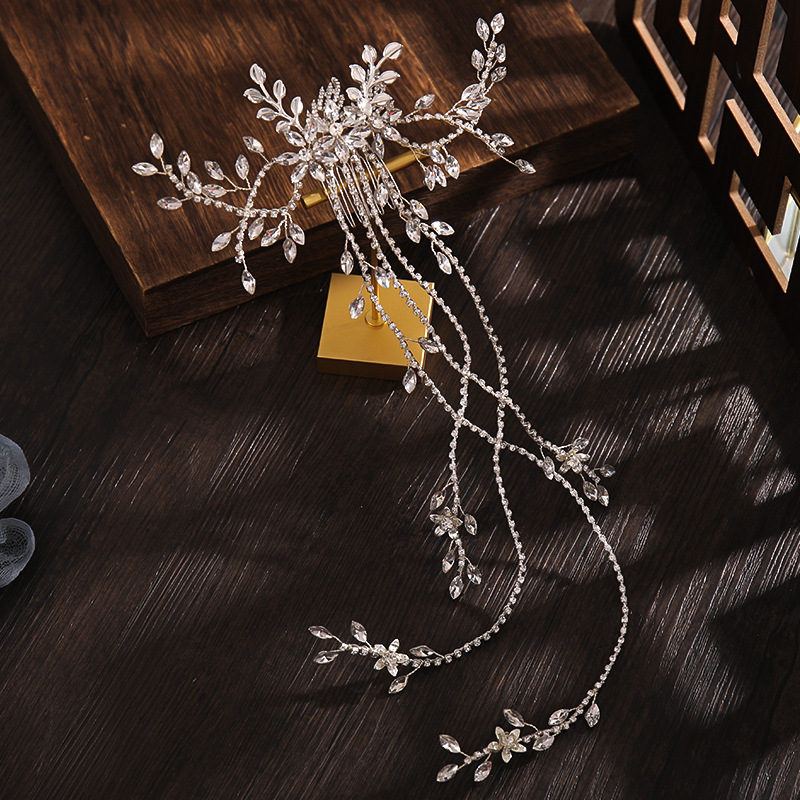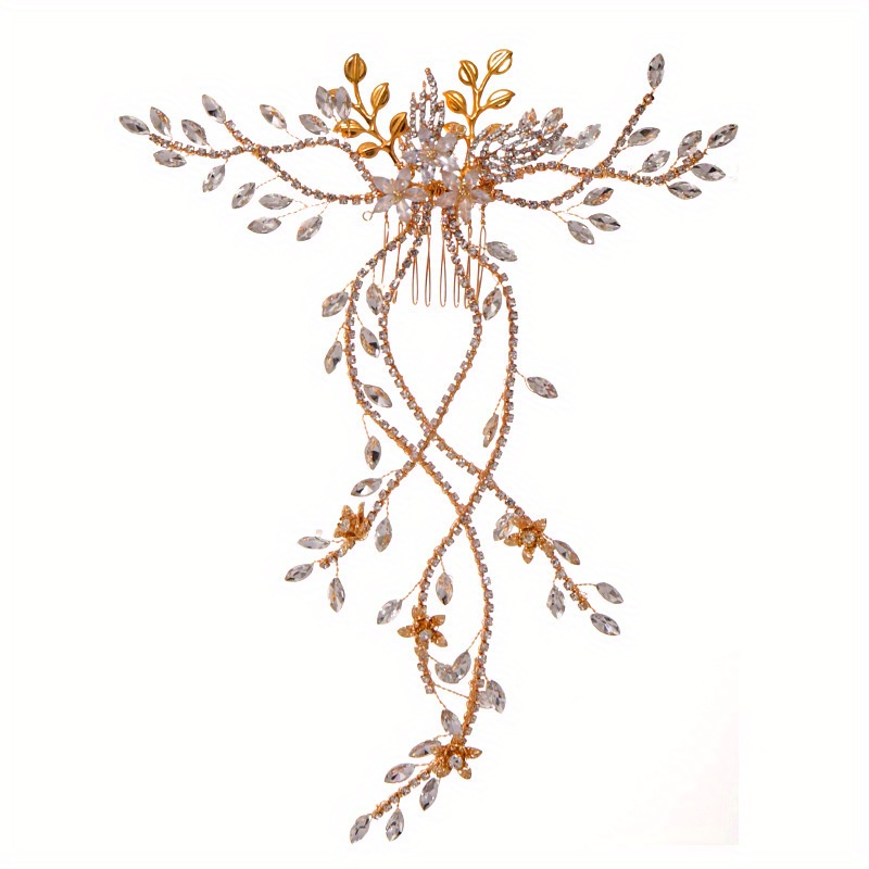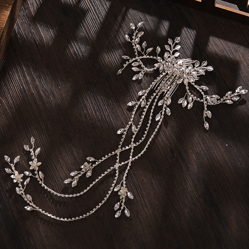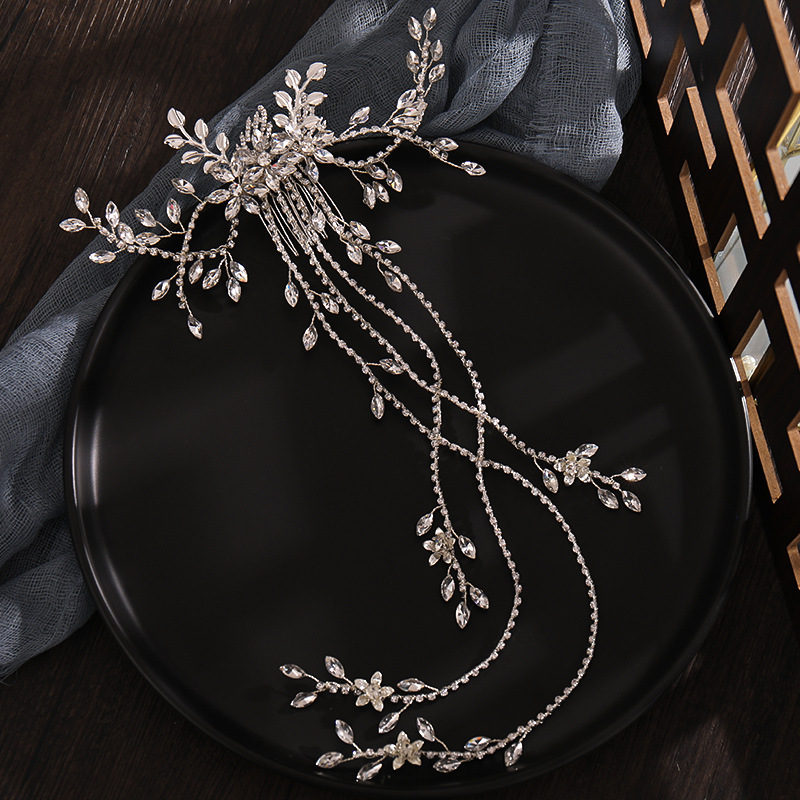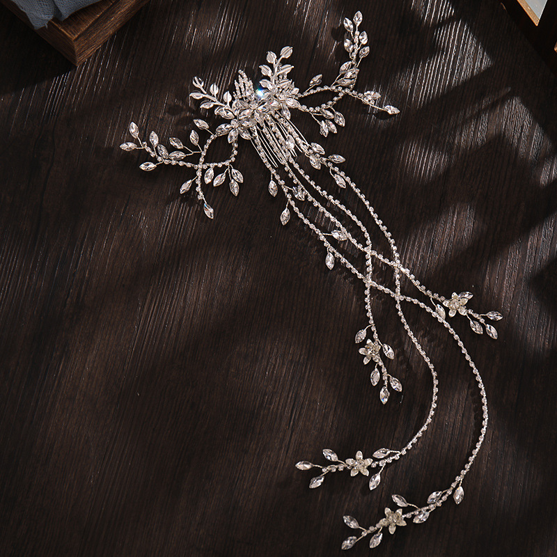 Enhance your bridal look with this elegant long hair comb featuring sparkling rhinestones. Perfect for weaving into your hairstyle, it serves as a stunning accessory for weddings, veils, and special occasions. This piece adds a touch of refined glamour to your ensemble.