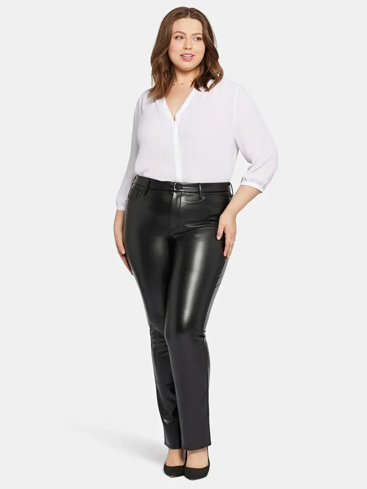 Elevate your wardrobe with these sleek black faux leather pants designed for a confident, polished look. Featuring a flattering high-waist cut and form-fitting pencil silhouette, they deliver a modern edge perfect for any occasion. The stretchy PU fabric moves with you while maintaining its shape, and functional pockets add everyday practicality. Available in extended sizes from L to 9XL, these versatile trousers transition seamlessly from casual outings to night-out style. The medium stretch ensures comfort without compromise, making them an essential addition to your collection.