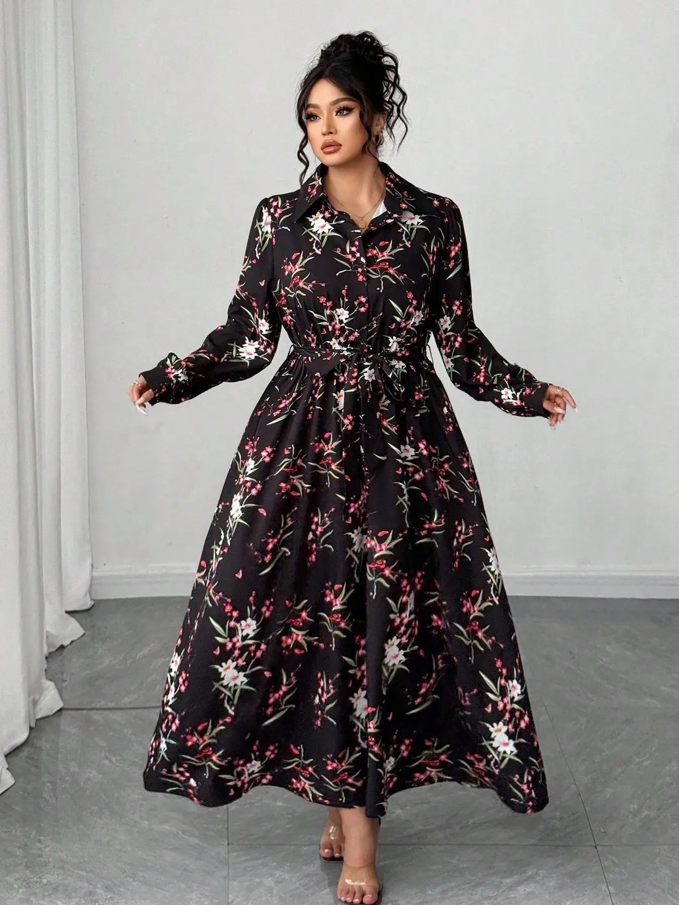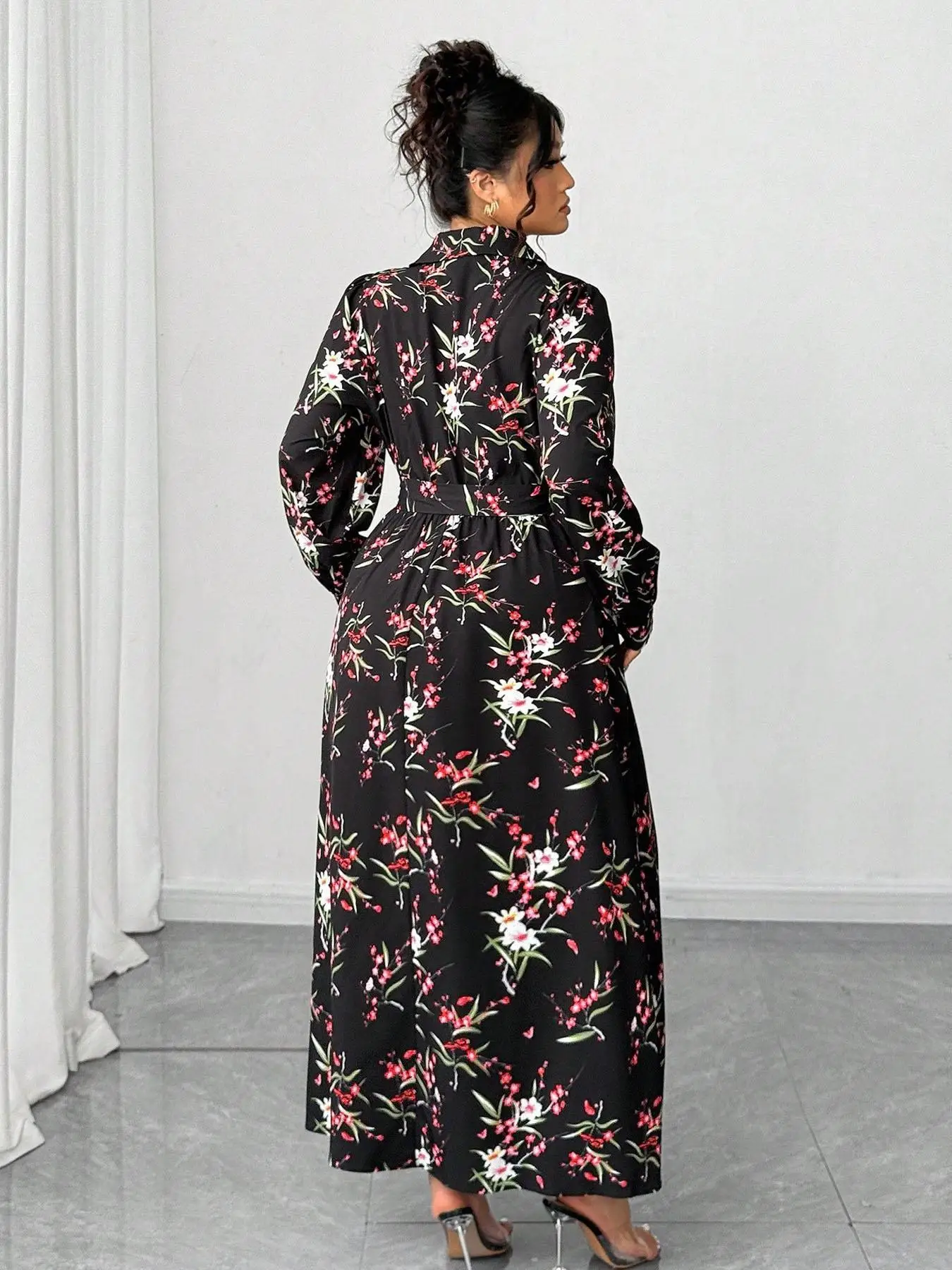 Black Floral Long Sleeve Maxi Dress