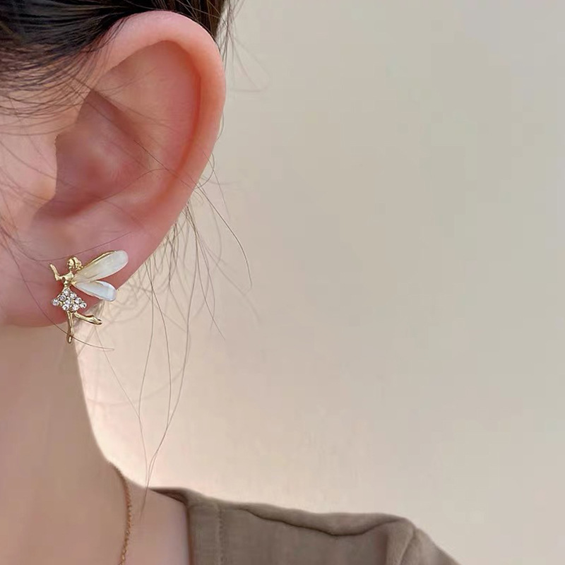 Elevate your style with these enchanting Fairy Stud Earrings, the perfect accessory for any outfit. Crafted from premium alloy with sparkling rhinestones, these gold-tone earrings feature delicate wing elements that capture light with every movement. The fresh, feminine fairy design adds a touch of magic to your everyday look. Electroplated for lasting beauty, these irresistible studs are a must-have addition to every woman's jewelry collection. Transform ordinary moments into extraordinary ones with these whimsical accessories.
