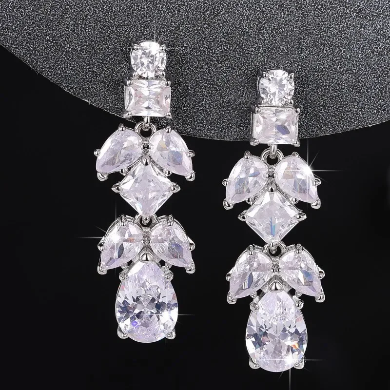 Elevate your special occasion look with these stunning cubic zirconia drop earrings, designed for the modern woman who refuses to compromise on style. Featuring brilliant geometric crystals set in quality copper, these fashion-forward pieces deliver that coveted light luxury aesthetic without the premium price tag. Perfect for weddings, parties, or everyday glamour, they're the versatile accessory that transforms any outfit. Lightweight and comfortable for all-day wear, these trendy earrings are your go-to choice for making a sophisticated statement.