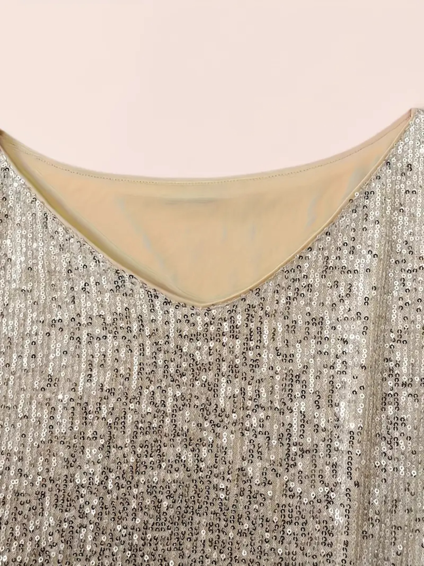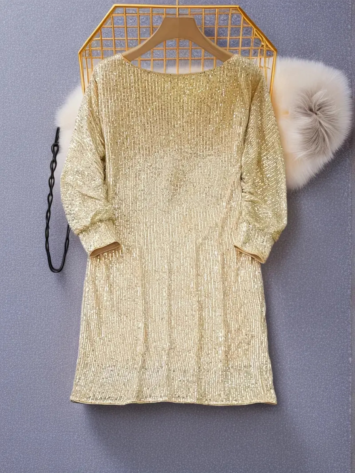 Gold Sequin Bodycon V-Neck Long Sleeve Dress XXL Bazaare Mart Gold Sequin Off Shoulder Dress