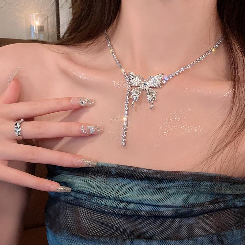 Flutter into fabulous with our sparkling Butterfly Necklace! This playful clavicle chain features a dazzling rhinestone-encrusted butterfly pendant that catches the light with every move. Crafted from quality alloy in a charming bow shape, it's the perfect accessory for women who love to add a touch of whimsy to their style. Embrace affordable luxury and let your fashion spirit take flight with this fun, eye-catching piece that's sure to collect compliments wherever you go!