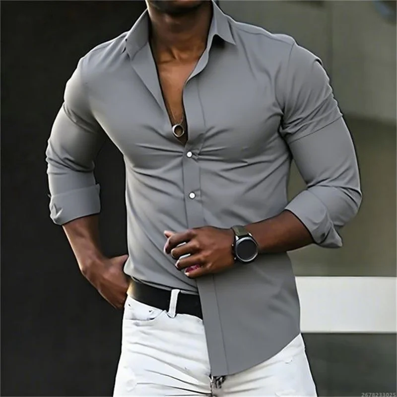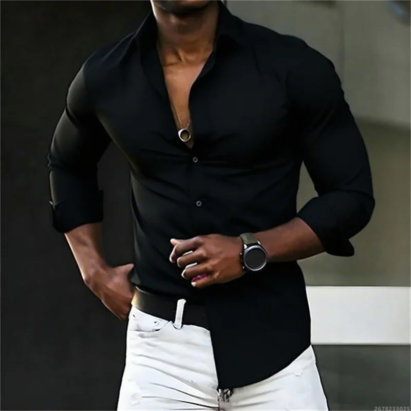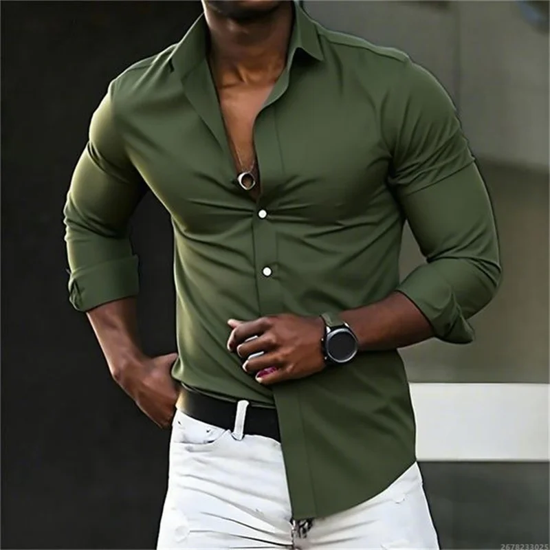 Elevate your wardrobe with this essential men's slim-fit long sleeve shirt that adapts to your lifestyle. With 17 stunning solid color options, you'll find the perfect shade for every occasion and season. Crafted from a durable polyester and elastane blend, this shirt maintains its shape and comfort through countless wears. The refined turn-down collar and button-up closure create a polished smart-casual look that transitions seamlessly from the office to weekend plans. The tailored slim fit flatters your frame while the full-length sleeves and completely open front design offer maximum styling flexibility. Whether you're shopping, networking, or simply looking to upgrade your everyday essentials, this versatile shirt delivers the quality and style you deserve year-round.
