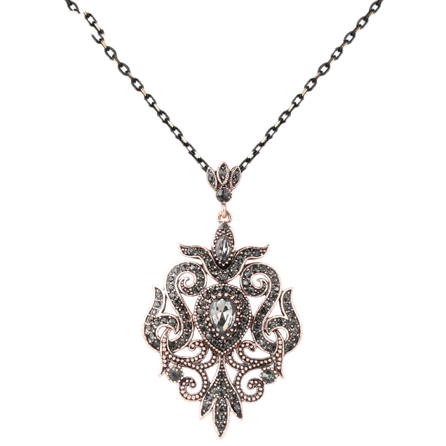 • Vintage-inspired filigree pendant with gray crystals